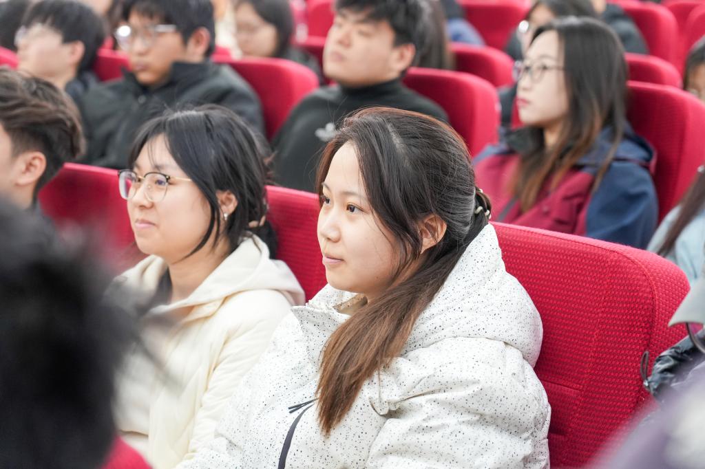 田志伟校友以“深耕职场·智领未来——基于TOGAF的人力资源数智化转型之路”为题,结合十余年职场经历和HR数智化转型实战经验,从求学与职场衔接、HR行业深耕历程、行业前沿与职业机遇三大板块为学弟学妹们破解就业难题提供多元路径。他为学弟学妹们梳理了校园知识与职场实战的结合技巧,给出学业规划与能力储备建议。还分享了面试技巧、职场软实力提升方法,内容兼具前沿性与实用性,贴合学生成长与职业发展需求,让在场师生受益匪浅。