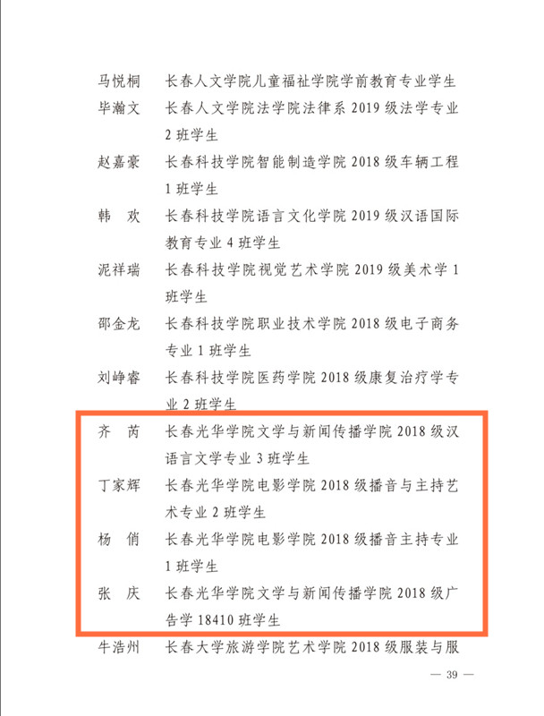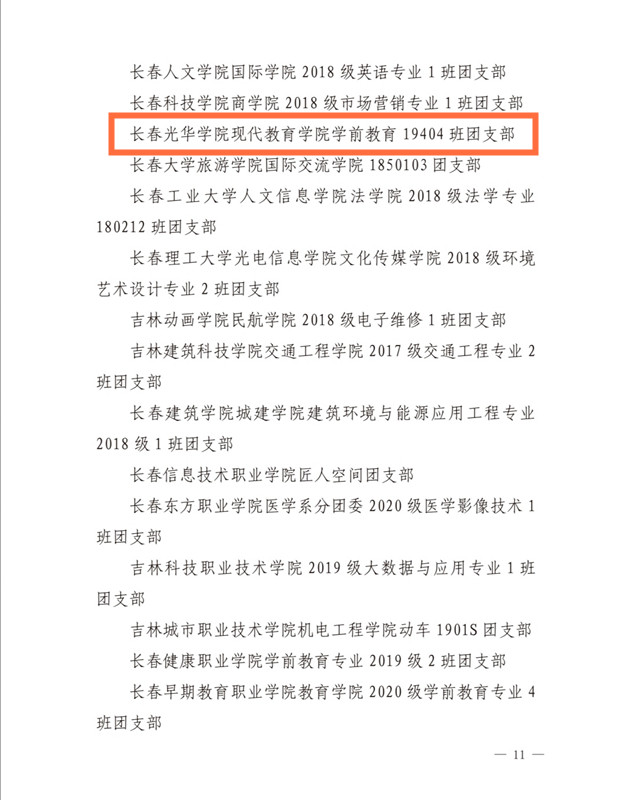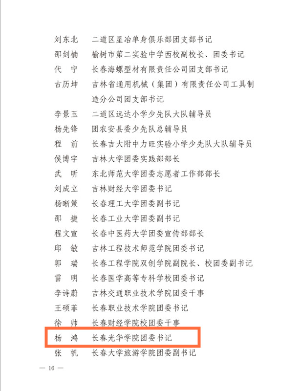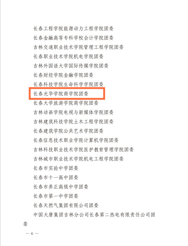 近日,共青团长春市委对2020年度长春市94个五四红旗团委、93个五四红旗团支部、144名优秀团干部、389名优秀团员予以通报表扬,我校一批先进集体和个人受到共青团长春市委表彰。