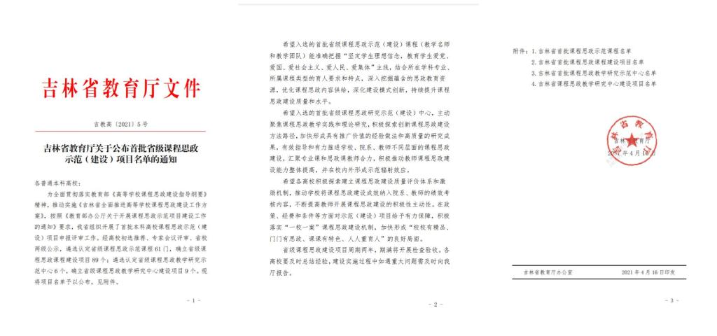 在省组织开展的首批本科高校课程思政示范(建设)目申报评审工作中,我校获批省级课程思政课程建设项目2个,省级课程思政教学研究中心建设项目1个。