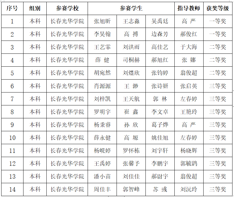 近日,由吉林省教育厅指导、吉林省大学生电子设计竞赛组织委员会主办、长春光华学院承办的2022年(鼎阳杯)吉林省大学生电子设计竞赛公布结果,我校电气信息学院14支队伍荣获奖项,其中一等奖2项,二等奖3项,三等奖9项。