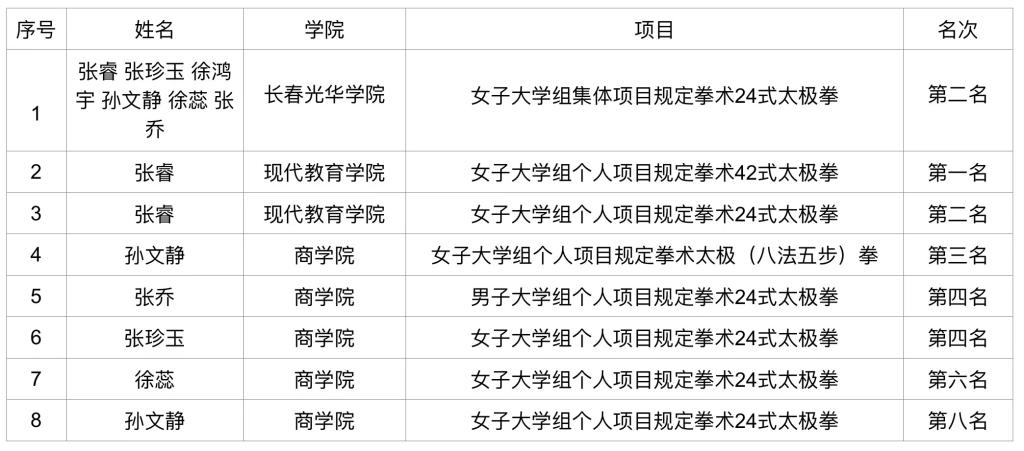 我校武术队将继续发扬吃苦耐劳、团结协作、努力拼搏、追求卓越、持之以恒的光华体育精神,为推动我校体育工作改革,更好提高学生体质健康工作做出更大贡献。(供稿:公共体育教研部 审核:贾小晨 赵健 编辑:刘安妮)