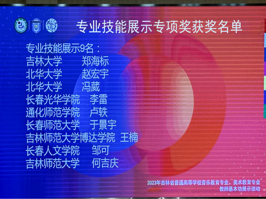 9月26至27日,由吉林省教育厅主办的2023年吉林省普通高等学校美术教育专业教师基本功展示活动在延边大学举行。来自吉林省14所普通高等学校的42名美术教育专业教师参加了本次展示活动,他们分别从教学展示(微课)、专业技能展示、审美和人文素养展示(经典美术作品赏析)三个环节进行角逐。