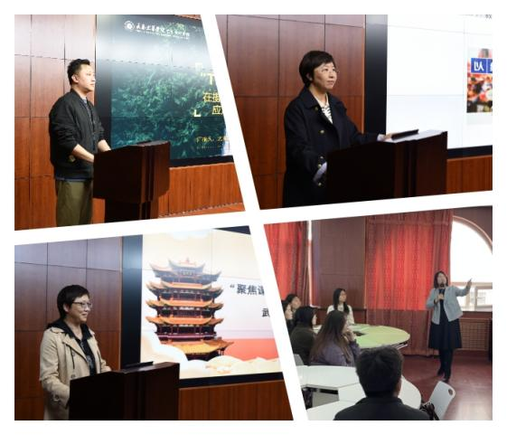 本次活动特别邀请4位参培教师代表现场展示培训班的学习成果转化的教学实践经验。艺术设计学院教师葛睿展示了他如何将华中师范大学宋荣教授的“TPS”研讨教学法应用于摄影课堂,以培养学生艺术思维与创造力,满足用人单位对于摄影专业毕业生的要求;电气信息学院教师王金莉立足于应用型人才培养的教学理念,应用武汉大学何春燕教授讲授的“BOPPPS教学模式”,分享了电气控制与PLC课程的建设路径;外国语学院教师程雪聚焦课程建设,以讲授的英语国家社会与文化课程为载体,分别将武汉大学杜莉教授分享的“产婆术”教学方法,华中师范大学佘能芳教授整合的教学创新点,湖北工业大学华倩教授展示的课程思政融入方法,宋荣教授创新的课堂活动组织、教学理念巧妙地转换到自己的课堂,呈现了学习后的课堂生成;管理学院教师刘慧捷和她的学生们以“烤地瓜”为例,展示了“BOPPPS教学模式”在“商业画布”课程教学中应用的教学全过程,汇报了参培教师将本次学习成果及时消化、探索与实践。