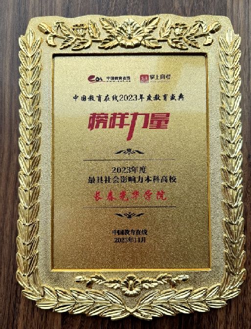 近日,中国教育在线“榜样力量·2023年度教育盛典”评选结果揭晓,长春光华学院摘得“2023年度最具社会影响力本科高校”桂冠。