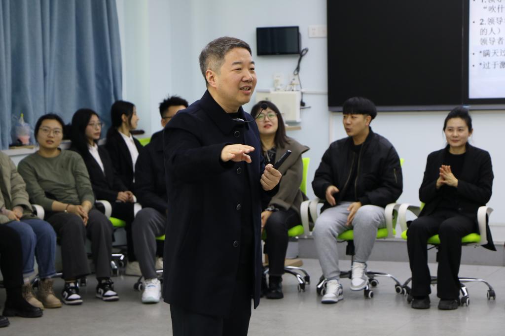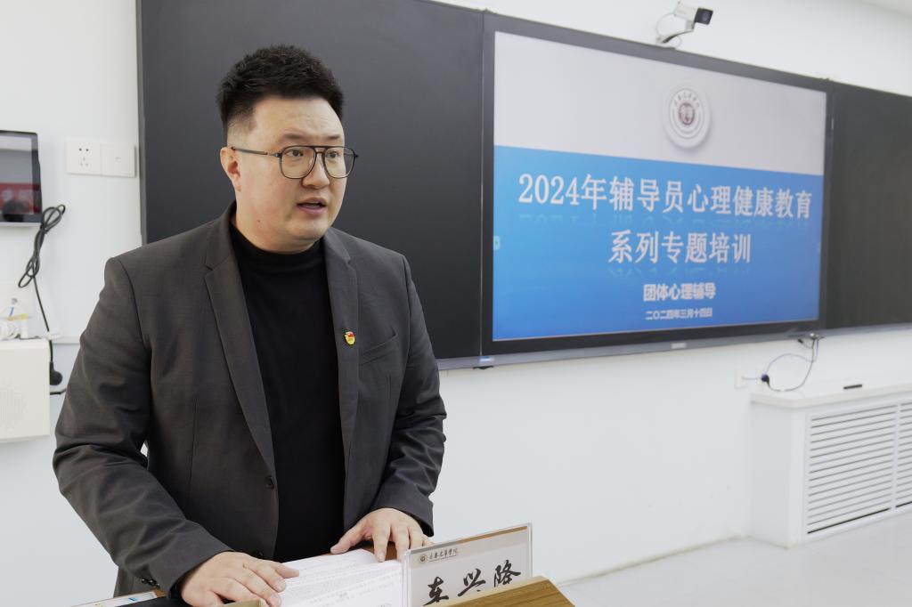 为贯彻落实全国、全省高校思想政治工作会议精神及《全面加强和改进新时代学生心理健康工作专项行动计划(2023—2025年)》《高校思想政治工作质量提升工程实施纲要》要求,我校于3月14日下午在第一教学楼开展了2024年辅导员心理健康教育系列专题培训(第一期)——团体心理辅导。本次培训邀请北华大学学生心理健康教育中心主任兼学生工作部副部长、国家二级心理咨询师、中国心理卫生协会团辅与治疗专委会青年委员、吉林省催眠协会副理事长、吉林市心理学会秘书车兴隆作主讲。校党委副书记兼副校长高海英出席,学生工作处处长杨鸿、副处长赵闯,各教学院党总支副书记,学生工作处、校团委全体人员,全体辅导员参加。培训由杨鸿处长主持。