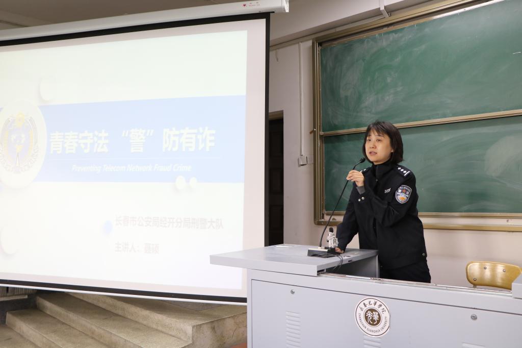 为进一步增强学生的反诈安全意识,建设平安校园,3月15日,学校学生工作处、保卫处邀请长春市公安局经开分局刑警大队聂警官一行两人,来校进行“青春守法、“警”防有诈”安全教育宣讲。