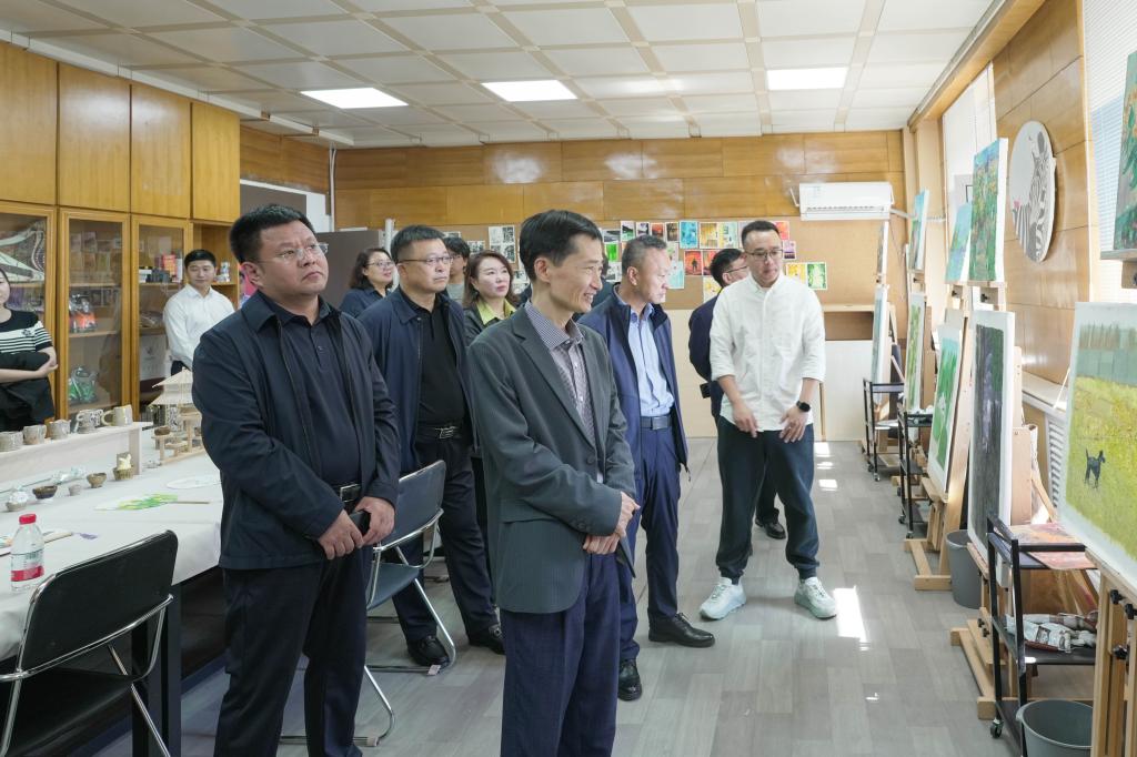 为深化艺术科研与实践育人融合,搭建师生创作交流平台,近日,长春光华学院美术创研工作室首期开放日活动在北校区图书馆五楼503室举行。长春光华学院董事长康启鹏,党委书记、督导专员闫峰,副校长栾学钢,副校长陈铁,副校长厉刚,党委副书记兼纪委书记、副校长李春生,副校长张勇,党委副书记兼副校长高海英莅临现场,现代教育学院院长刘国权、党总支副书记韩刚、教学副院长尹航、科研副院长陈遥及师生代表共同参观。