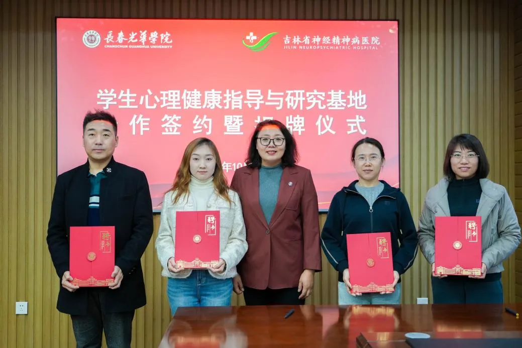 为深入贯彻落实《吉林省推进高校心理健康医校联动工作方案》文件精神,构建学校与专业医院协同联动的学生心理健康工作格局,10月23日下午,我校与吉林省神经精神病医院共建学生心理健康指导与研究基地签约暨揭牌仪式在行政楼第一会议室举行。