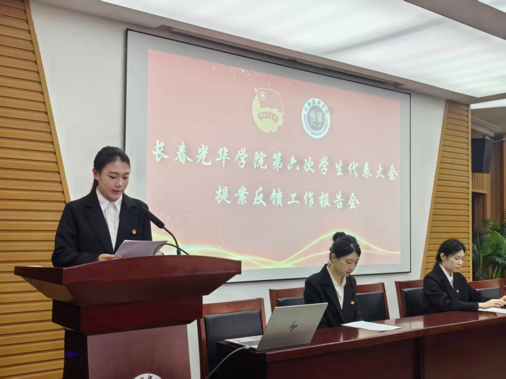为深入落实学生会全心全意为同学服务的宗旨,畅通学生诉求反馈渠道,近日,长春光华学院召开第六次学生代表大会提案反馈工作报告会,校学生会主席团成员及学生代表参加会议。