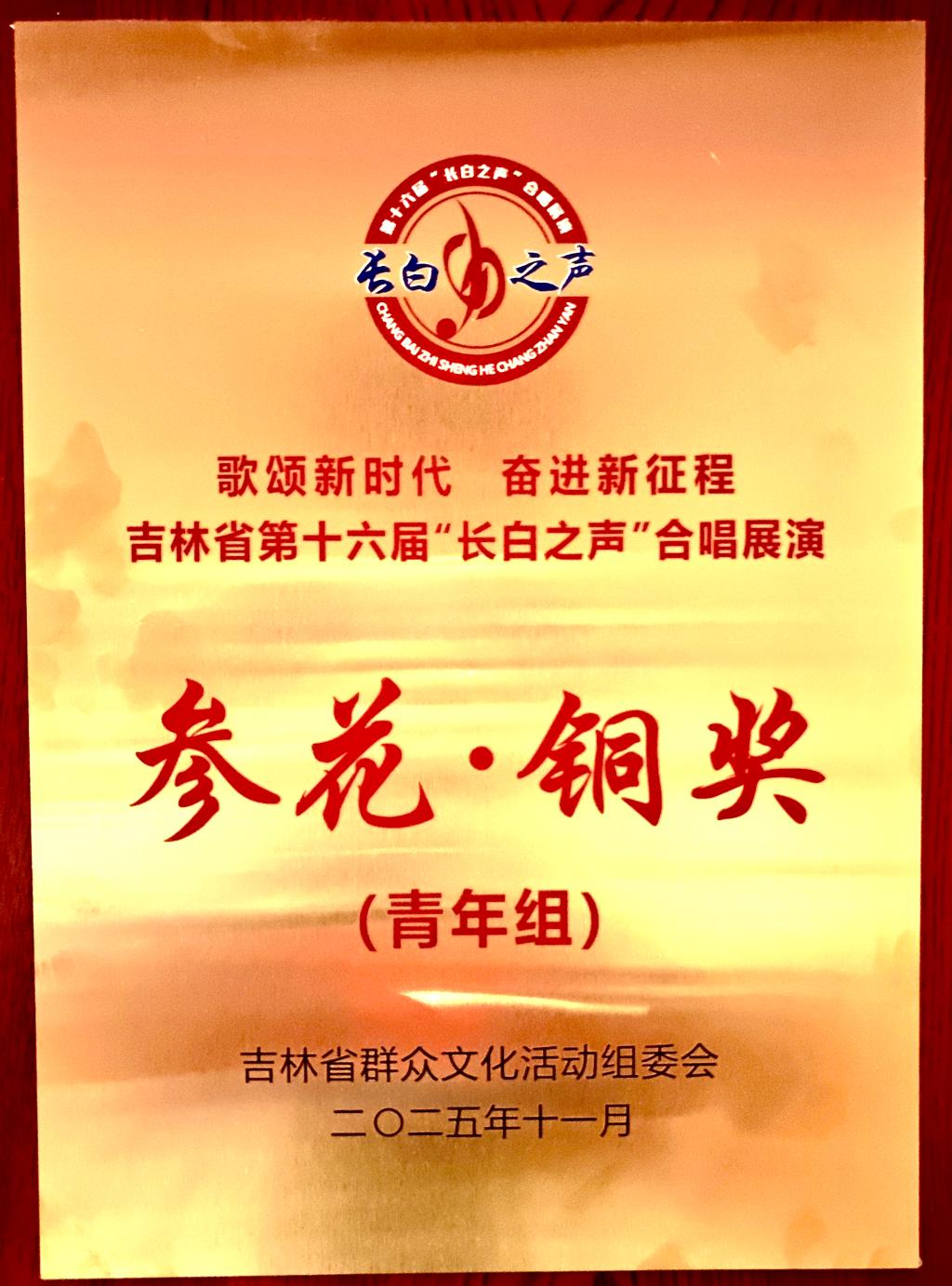 11月16日,由中共吉林省委宣传部、吉林省文化和旅游厅、吉林省教育厅主办的吉林省第十六届“长白之声”合唱展演活动在长春市长影音乐厅举行,我校合唱团在展演活动中荣获青年组“参花·铜奖”荣誉称号。