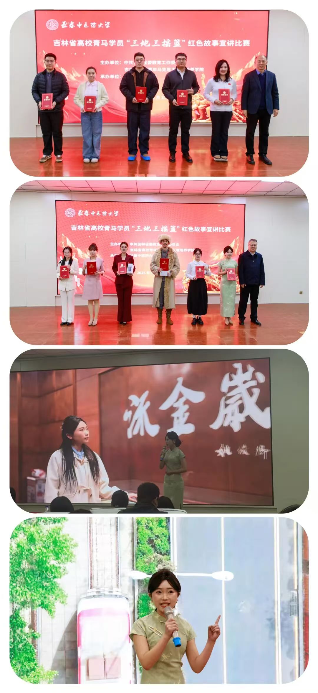 12月10日,由中共吉林省委教育工作委员会、吉林省高校青年马克思主义者培养学院主办,长春中医药大学承办的吉林省高校青马学员“三地三摇篮”红色故事宣讲比赛决赛落下帷幕。我校学生王氏鸿艺以《川韵映黑土,青春赴新程》为主题,凭借扎实的内容与出色的现场表现,获得一等奖,马克思主义学院教师关司祺获评优秀指导教师。